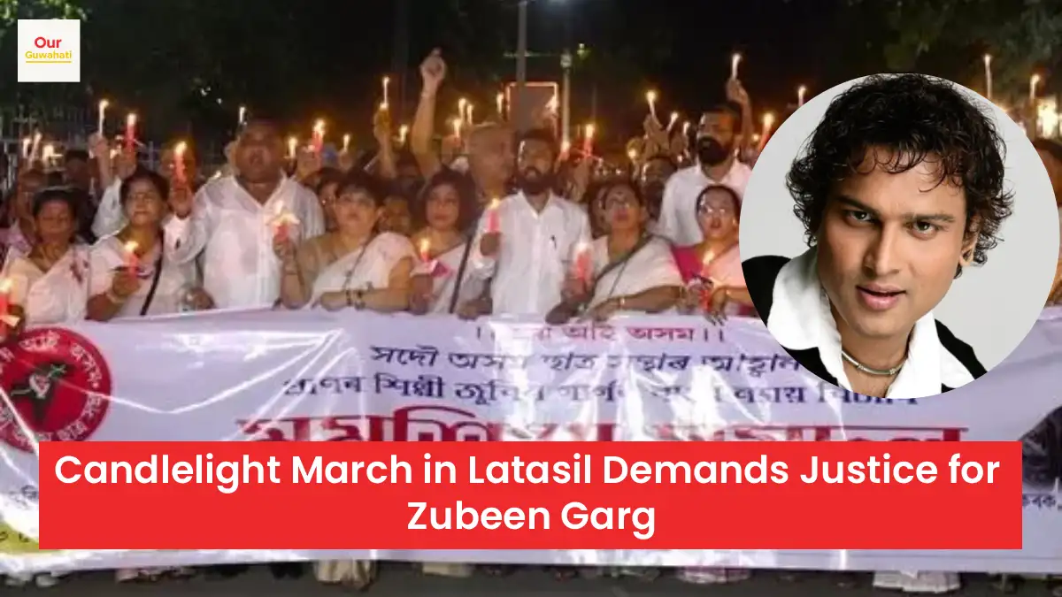 Guwahati, Sept 26: The streets of Latasil in Guwahati glowed with the light of nearly 500 candles on Friday evening as residents, joined by members of the All Assam Students’ Union (AASU), staged a powerful march in memory of the late cultural icon Zubeen Garg.